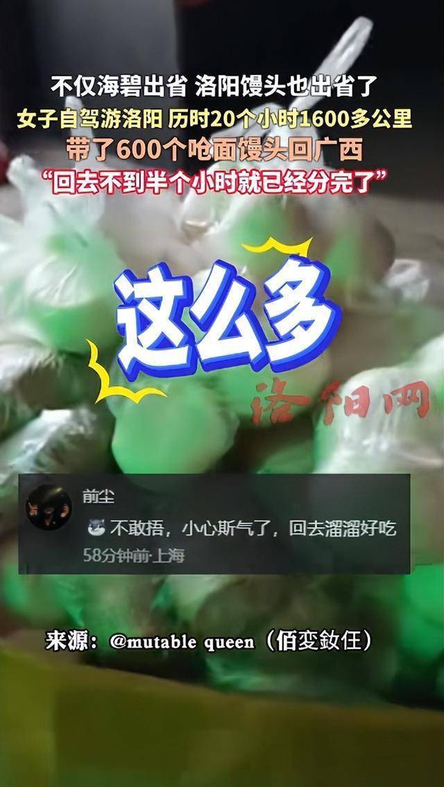 招商配资网平台 女子自驾游洛阳,历时20个小时1600多公里带了600个馒头回广西:朋友点名要的,刚到家就被抢空了 历史 来源:旷世配资官网 网站:鸿岳资本配资 日期:2026-03-05 13:13:32 查看:68